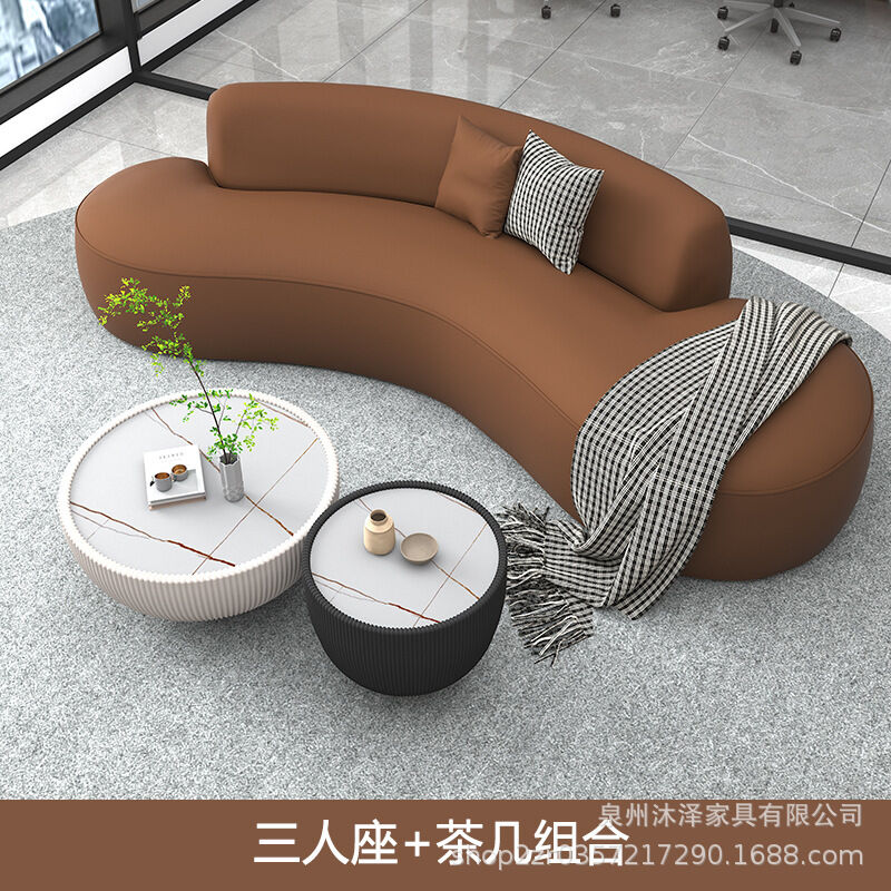 🚚免運到府 辦公室休閑弧形沙發茶幾組合簡約現代酒店大堂休息區會客洽談沙發