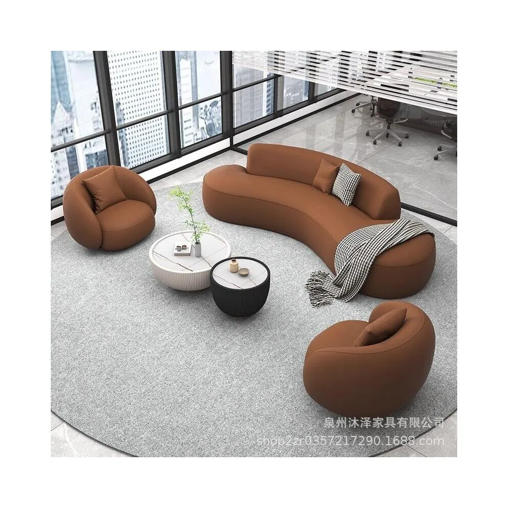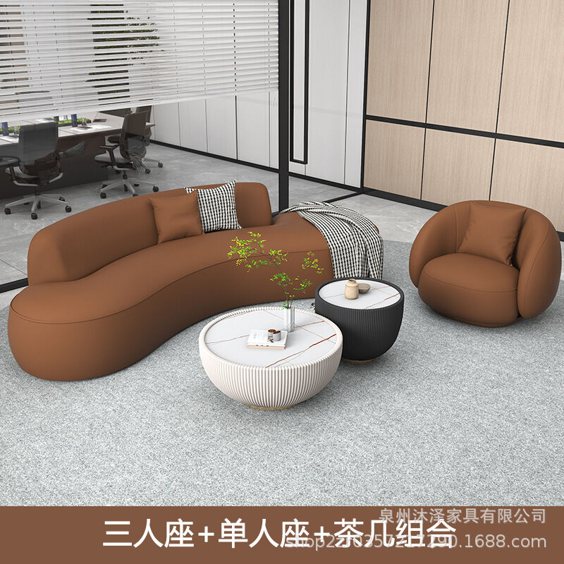 🚚免運到府 辦公室休閑弧形沙發茶幾組合簡約現代酒店大堂休息區會客洽談沙發
