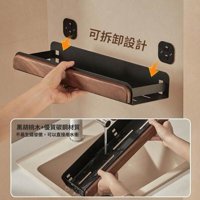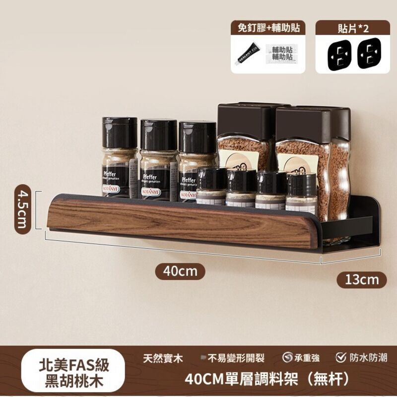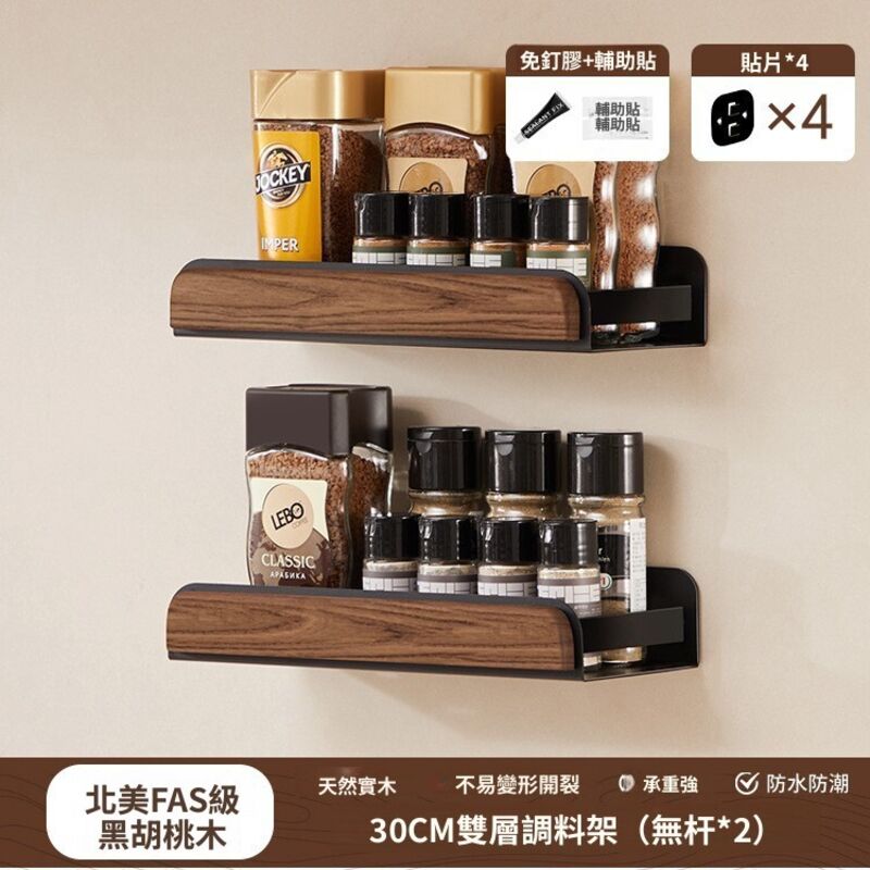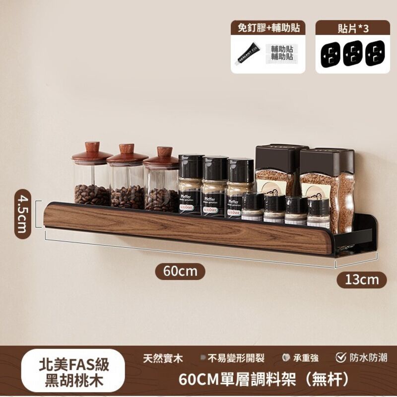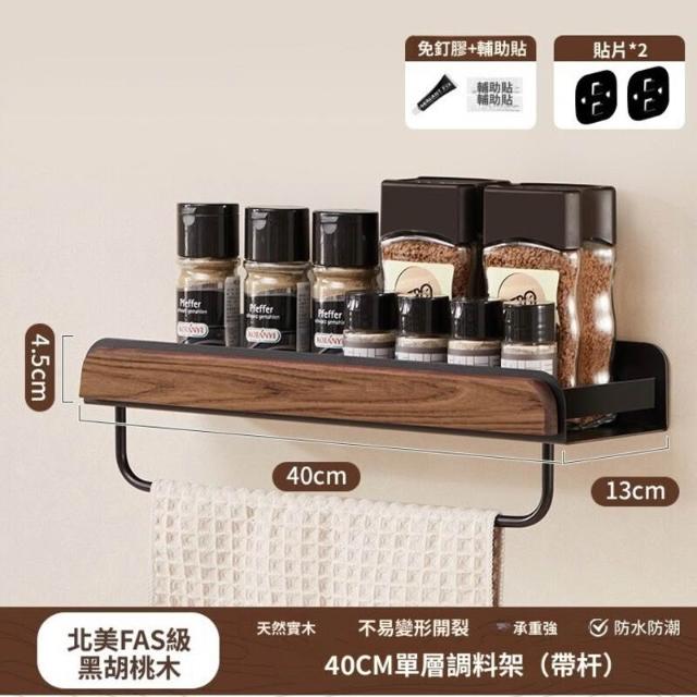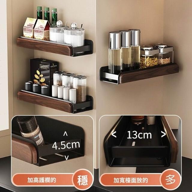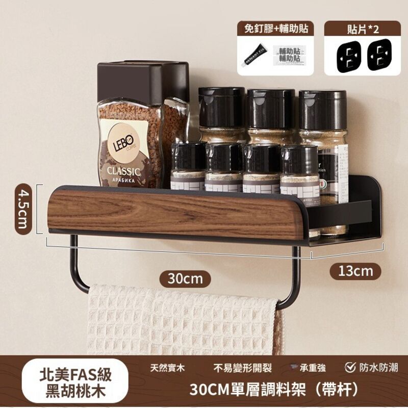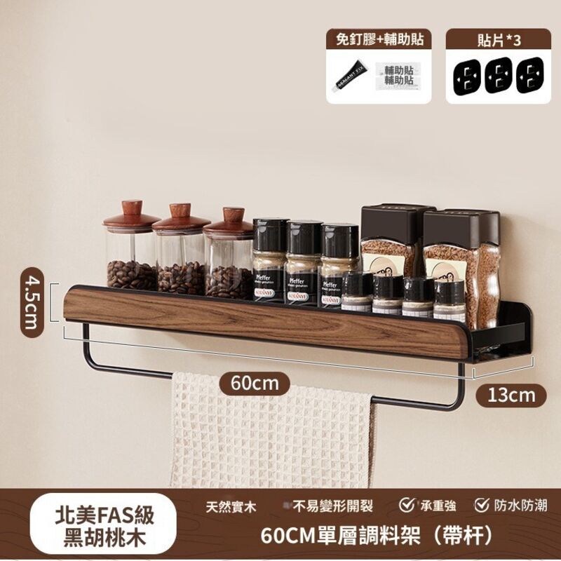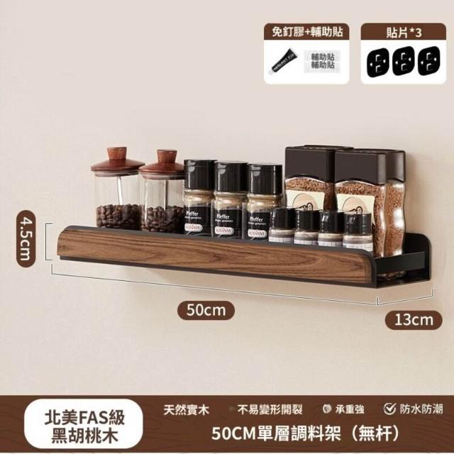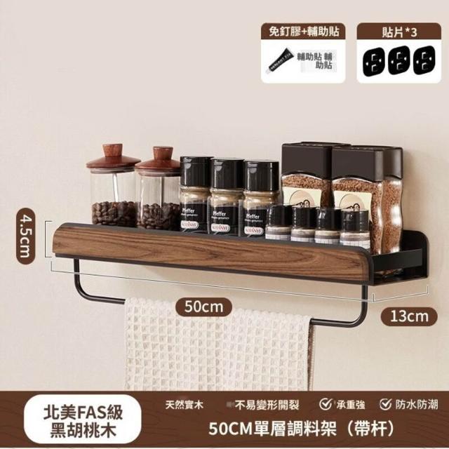 新品下殺⚡️ 胡桃木廚房置物架調料架免打孔多層刀架鍋蓋筷勺子墻上壁掛收納架