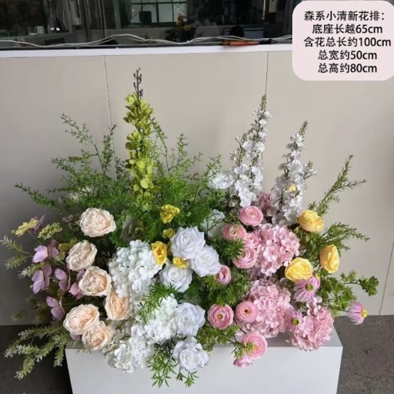 森系地排花蘆荀草花排婚禮堂訂婚結婚舞臺背景布置裝飾仿真花藝