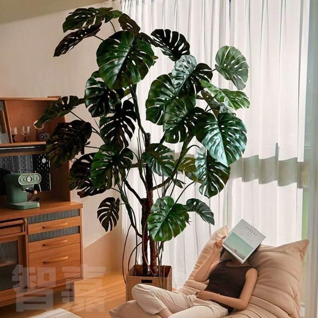 龜背竹仿真綠植高端輕奢盆栽大型龜背樹室內櫥窗落地植物裝飾擺件