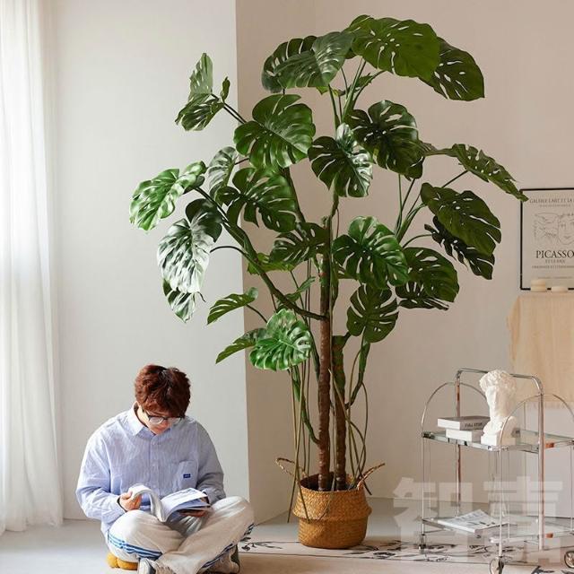 龜背竹仿真綠植高端輕奢盆栽大型龜背樹室內櫥窗落地植物裝飾擺件