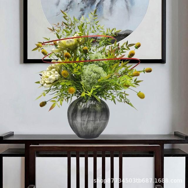 新中式仿真花藝綠植酒店樣板房盆景茶幾售樓部玄關裝飾品現代擺設
