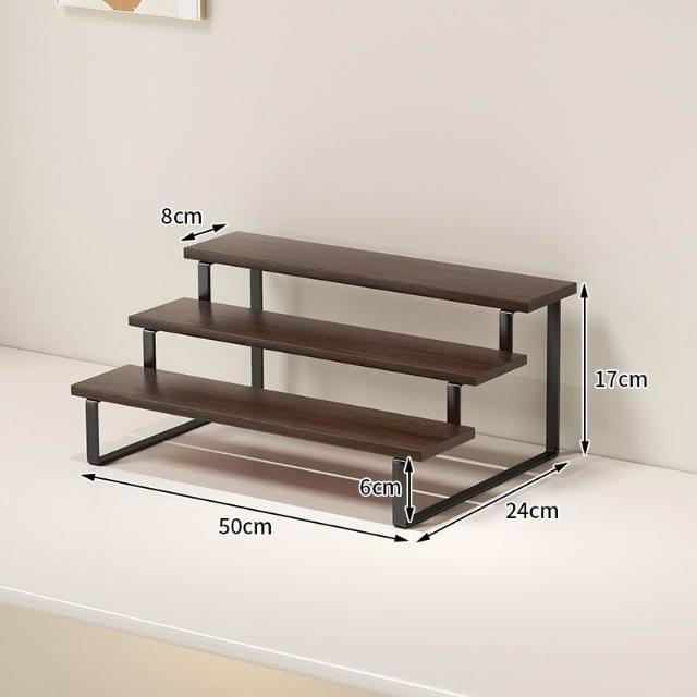 收納神器⚡️ 架子手辦香水深胡桃置物架實木咖啡杯桌面展示階梯收納加寬展示架