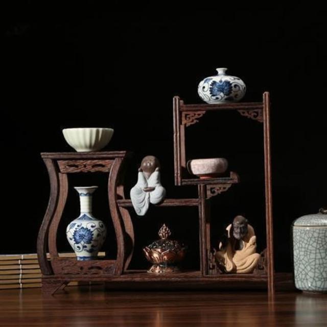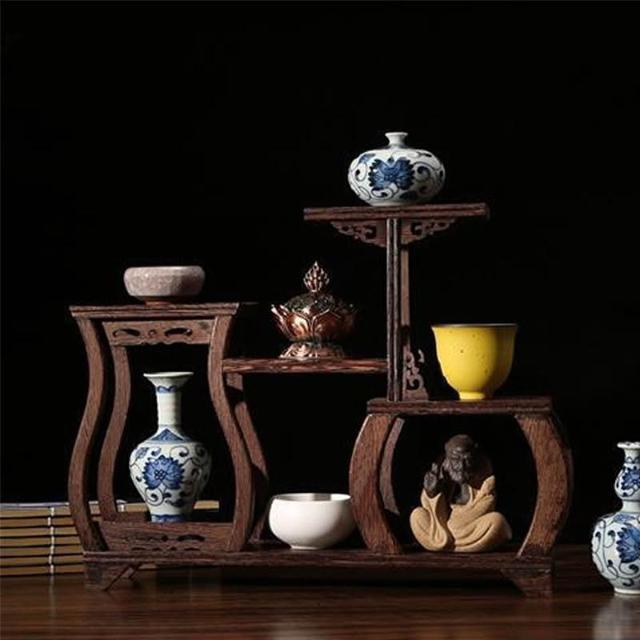 收納神器⚡️ 雞翅木博古架中式小多寶閣茶具架子實木置物架茶壺架擺件架展示架