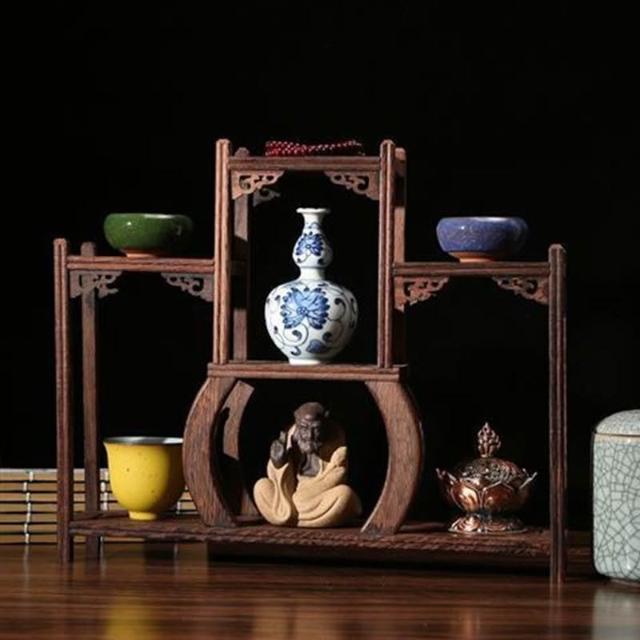 收納神器⚡️ 雞翅木博古架中式小多寶閣茶具架子實木置物架茶壺架擺件架展示架