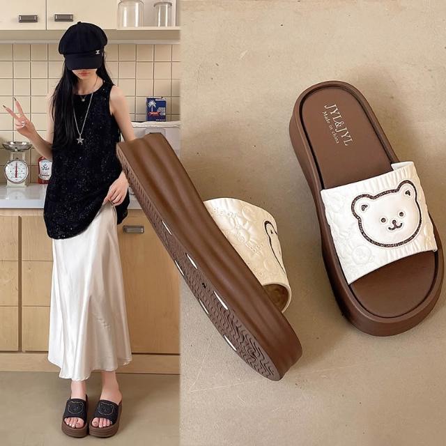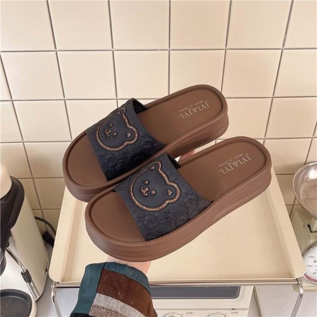 拖鞋系列 小熊厚底新款拖鞋女夏外穿防滑可愛居家室內網紅ins增高涼拖