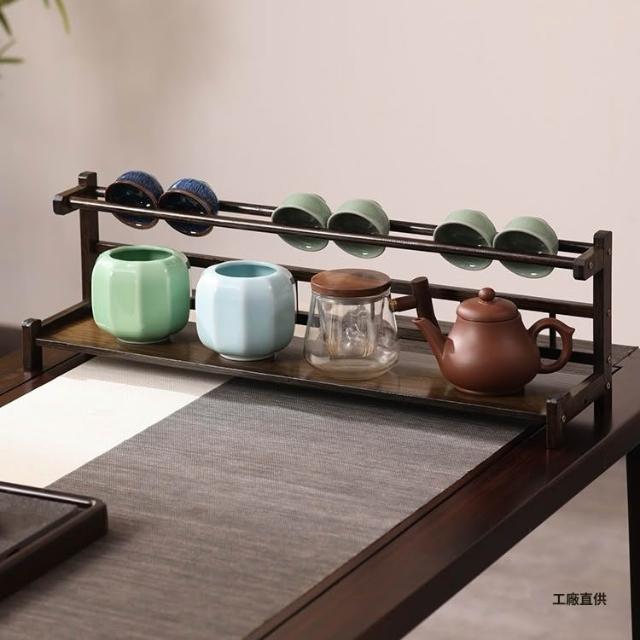 精品 桌面茶杯收納置物架小型博古架非實木中式紫砂壺擺件架茶具展示架