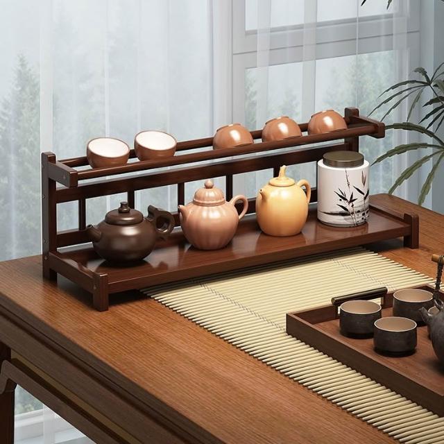 精品 小型桌面博古架新中式茶具茶葉置物架非實木茶桌紫砂壺茶杯展示架