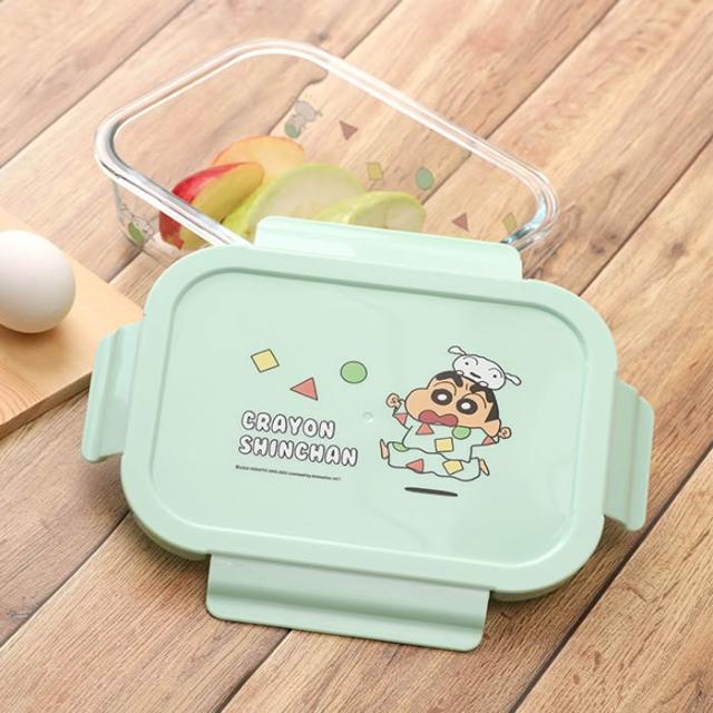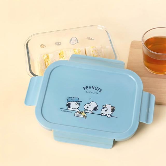 Norns耐熱玻璃保鮮盒 蠟筆小新 史努比 小熊維尼 櫻桃小丸子 三眼怪 1000ml容量 長方形便當盒 保鮮盒 餐盒 便當盒