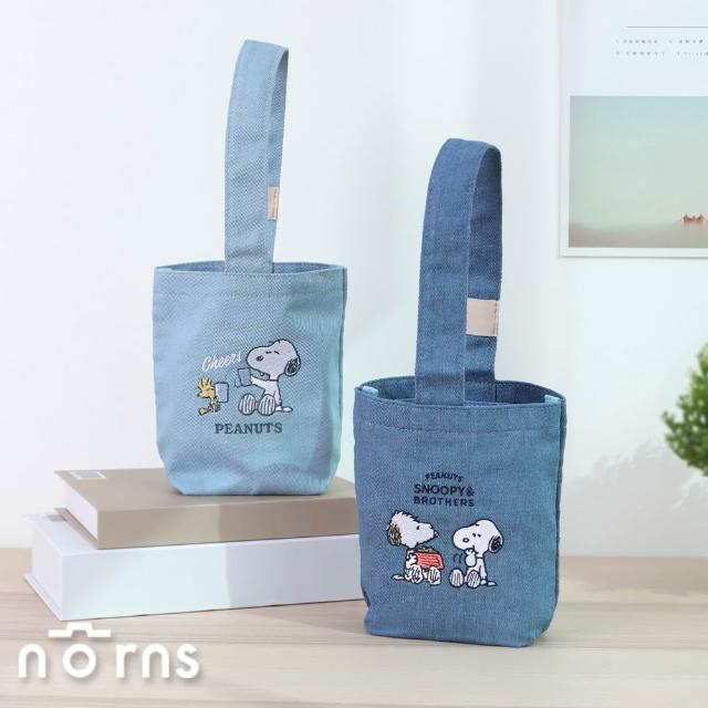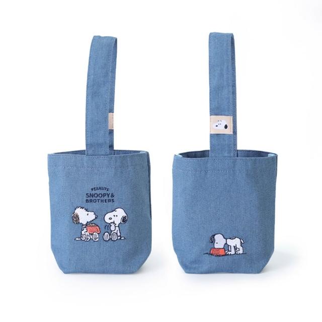 NornsPeanuts史努比牛仔飲料提袋 - 雙面刺繡牛仔風藍 飲料提袋 隨身手提袋