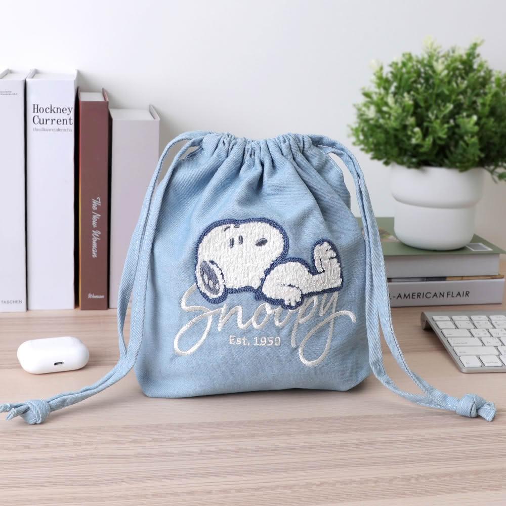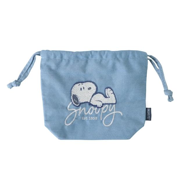 NornsPeanuts Snoopy Oversize 牛仔風束口袋 - 史努比 毛巾繡 收納袋