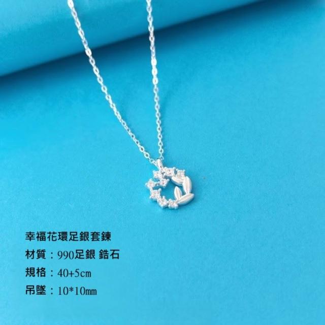 女生禮物 禮物 純銀項鏈 足銀項錬 幸福花環足銀套鏈 女生項錬 銀項錬 純銀套鏈 生日禮物 銀飾 飾品 999純銀項錬