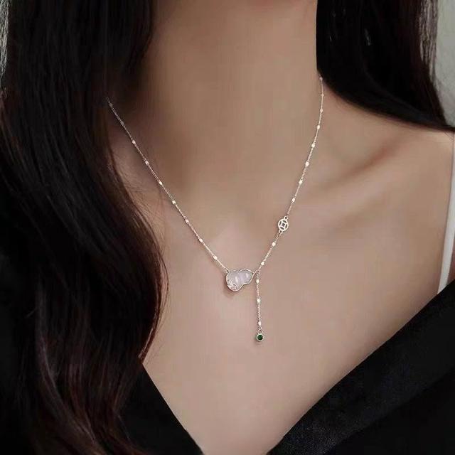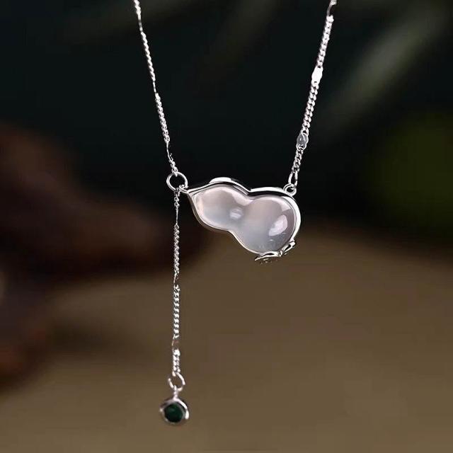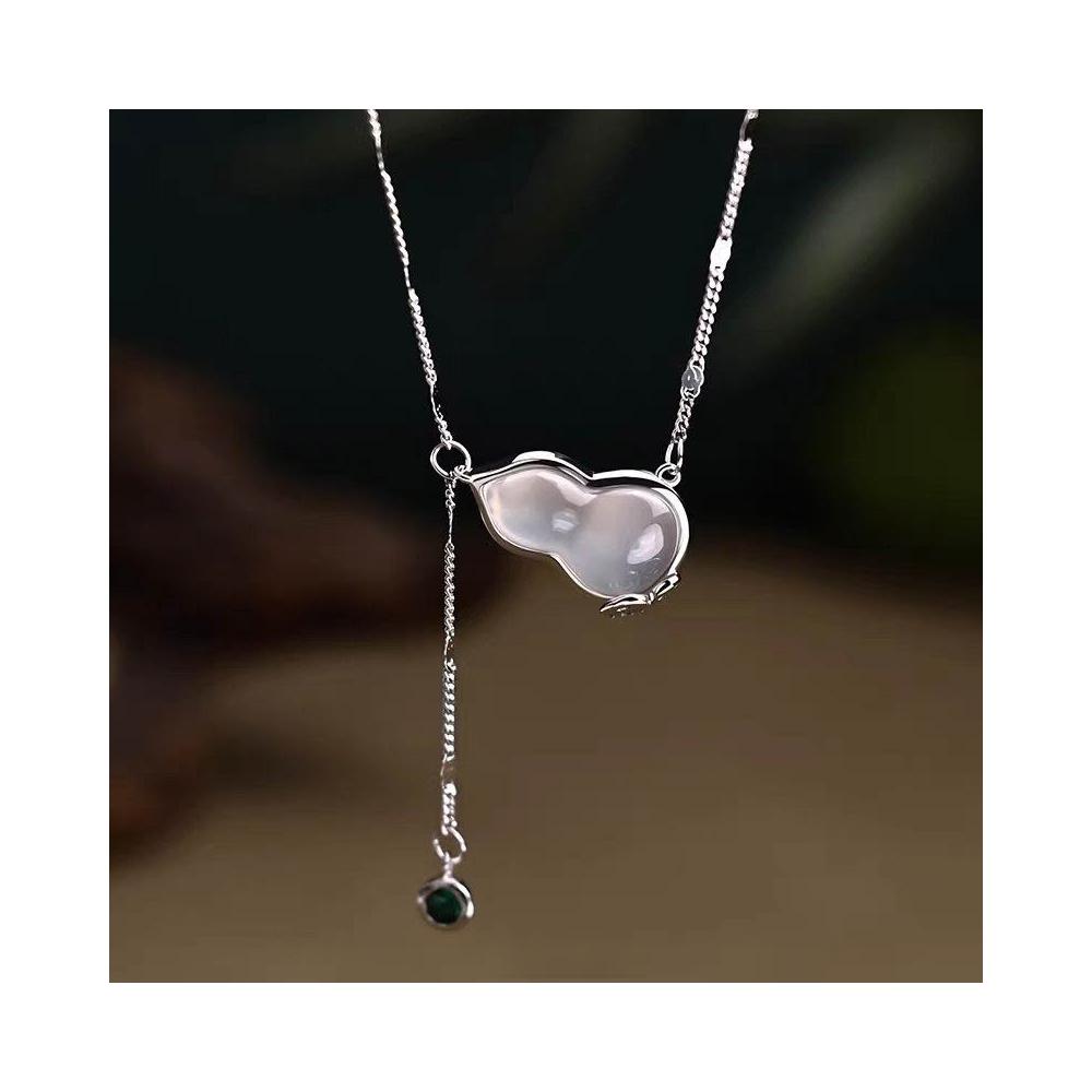 時尚純銀項鏈 銅錢玉髓葫蘆項錬