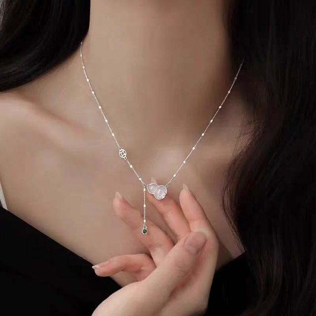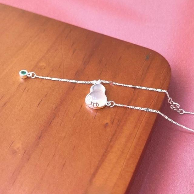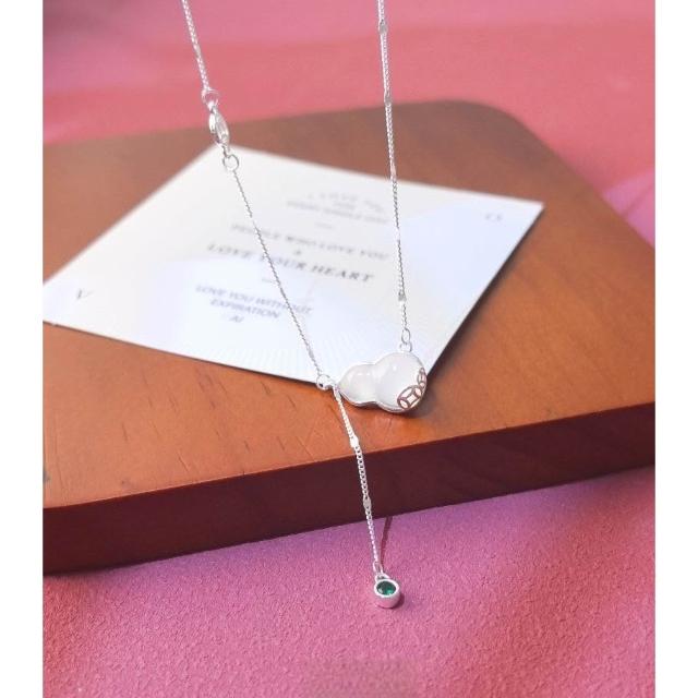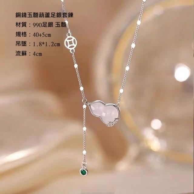時尚銀項鏈 銀項鏈 990足銀項錬 銅錢玉髓葫蘆純銀項鏈 女生項錬 銀項錬 純銀套鏈 生日禮物 銀飾 飾品 925純銀