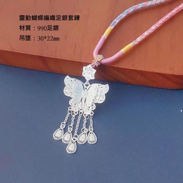 蝴蝶百搭時尚銀項鏈 靈動蝴蝶編織足銀項鏈 990足銀項錬 女生項錬 純銀項錬 純銀套鏈 生日禮物 銀飾 飾品 925純銀