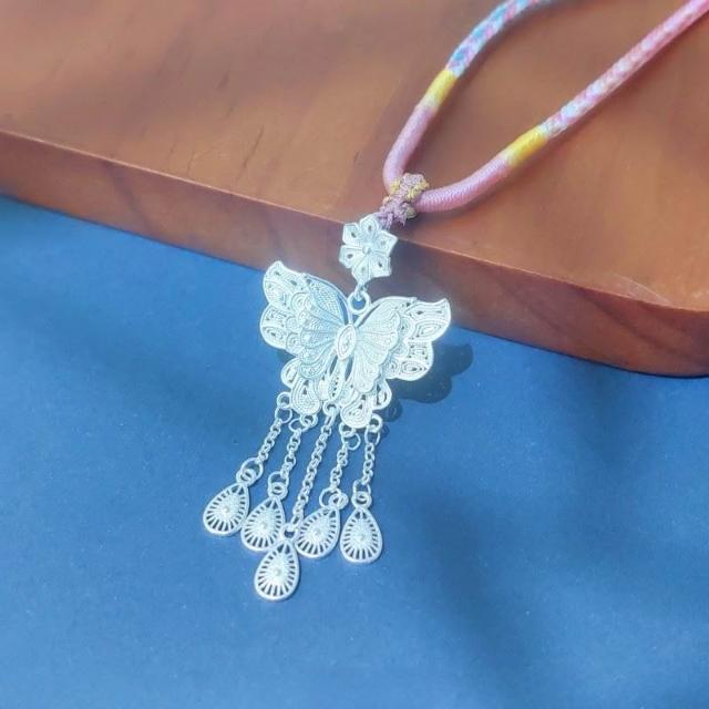 蝴蝶百搭時尚銀項鏈 靈動蝴蝶編織足銀項鏈 990足銀項錬 女生項錬 純銀項錬 純銀套鏈 生日禮物 銀飾 飾品 925純銀