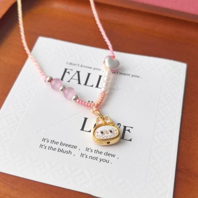 可愛純銀項鏈 軟萌粉 Labubu編織套鏈 把童話裡的精女生項錬 銀項錬 純銀套鏈 生日禮物 銀飾 飾品 925純銀