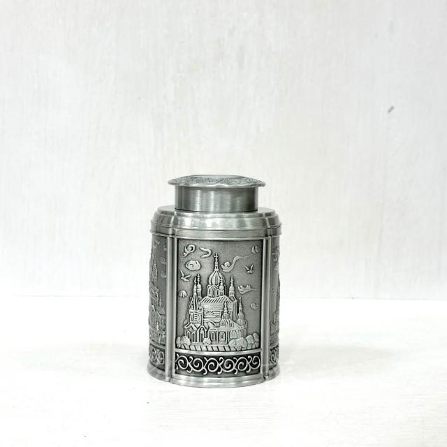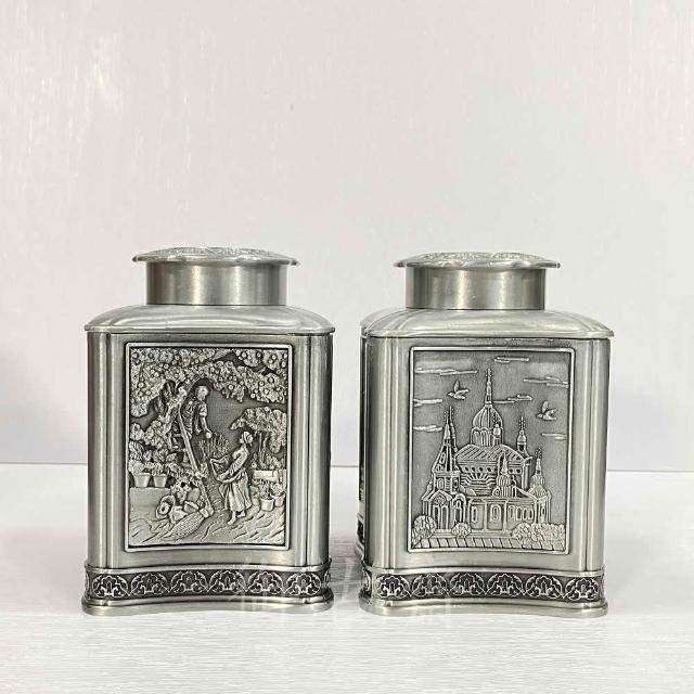 御古齋錫罐 精緻浮雕 茶葉罐 半斤罐 農作豐收 宮廷城堡 復古錫罐 精緻茶具 茶道精品 0714