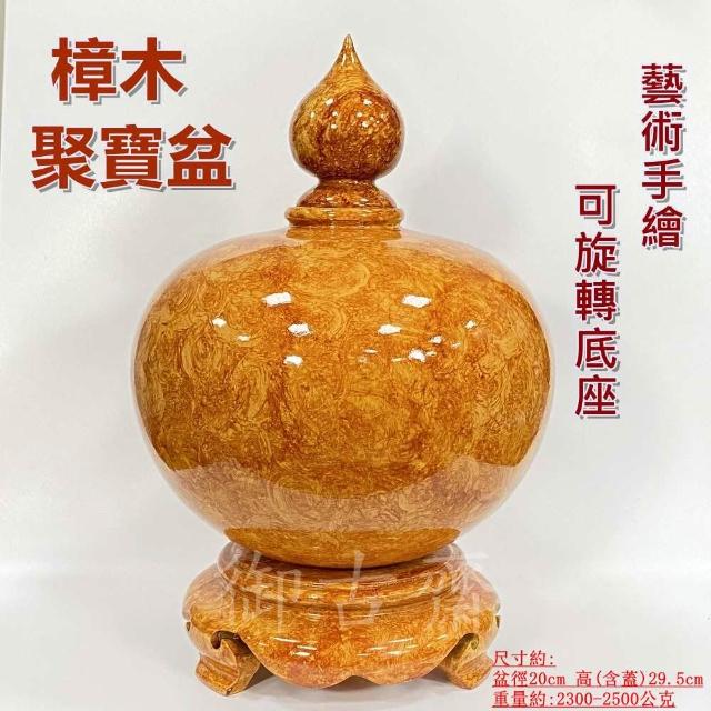 御古齋樟木 藝術手繪 聚寶盆 帶可旋轉底座 招財進寶 開運聚氣 財源廣進 風水開運擺件 0708