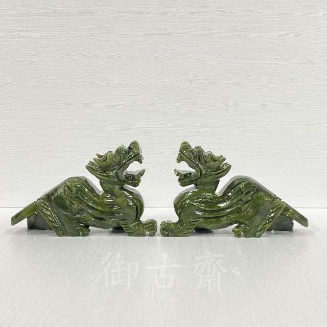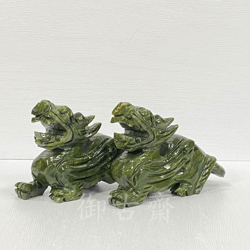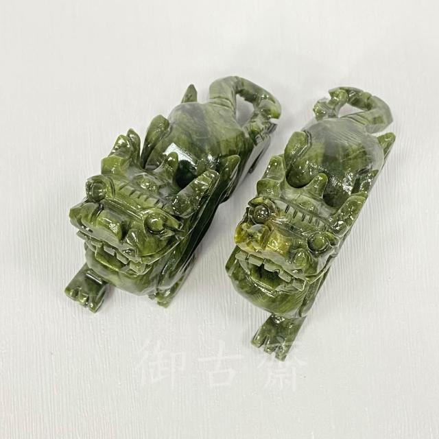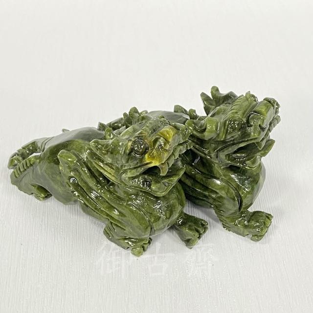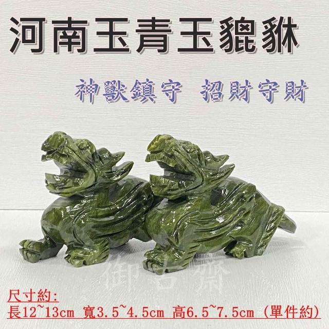 御古齋天然 河南玉青玉 精雕 12公分 飛天貔貅 一對 神獸鎮守 招財守財 迎財納福 開運轉運 風水開運擺件 0728
