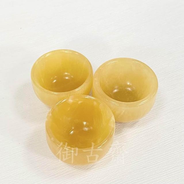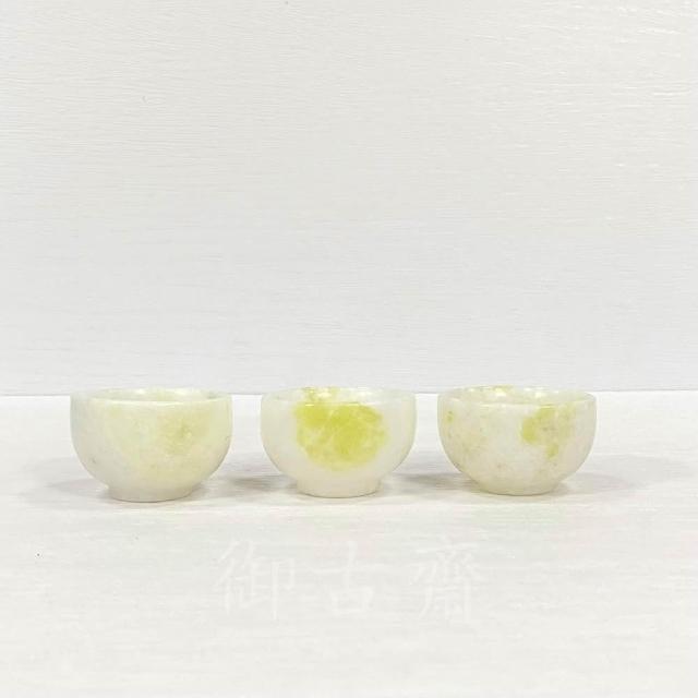御古齋天然 黃玉 白玉 藍田玉 供杯 天然紋路 養生玉杯 貔貅供杯 神獸水杯 三杯一組 1021
