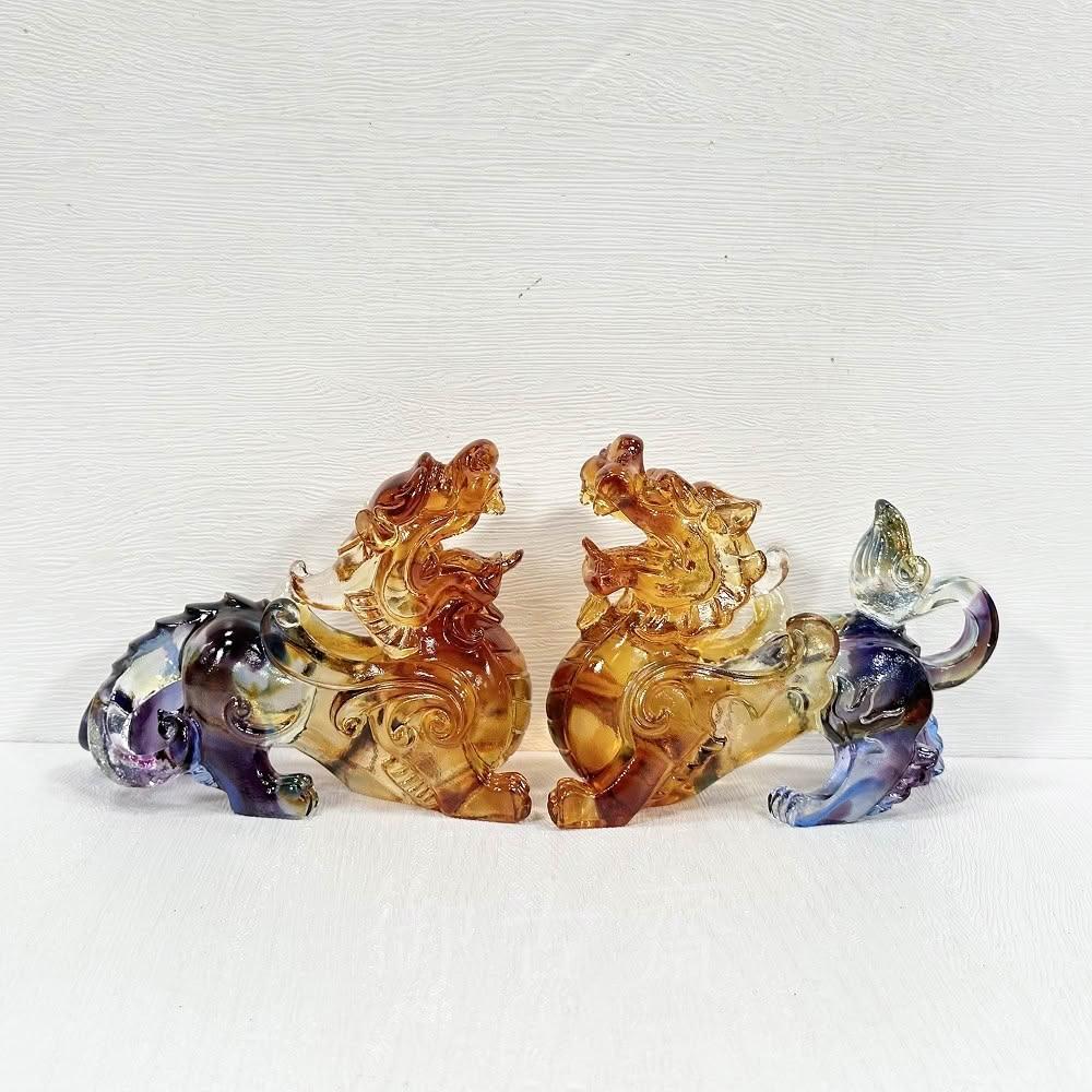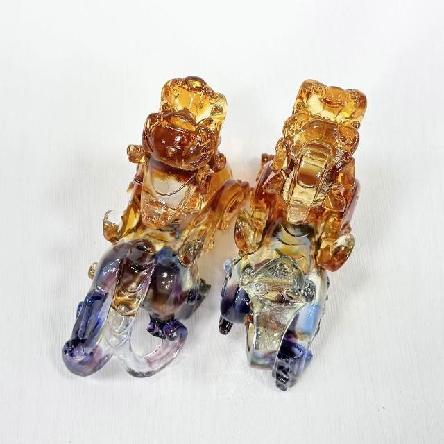 御古齋精雕 彩晶琉璃 大貔貅 一對 招財避邪擋煞 增強正能量 開運五行 風水開運擺件 琥彩款 0321