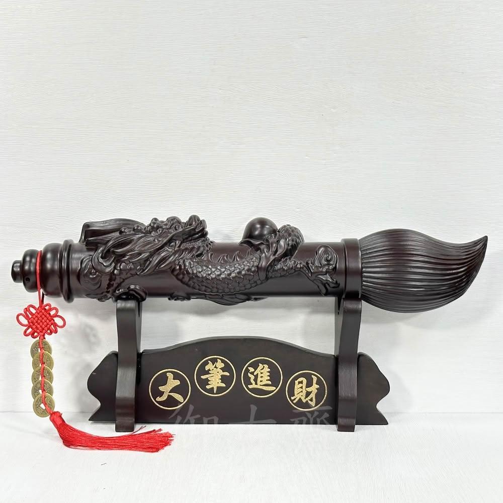 御古齋黑檀木 立體龍雕 龍吐珠 文昌筆 48cm 大筆進財 開運擺件 附座 五帝錢 1102