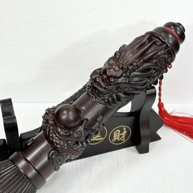 御古齋黑檀木 立體龍雕 龍吐珠 文昌筆 48cm 大筆進財 開運擺件 附座 五帝錢 1102