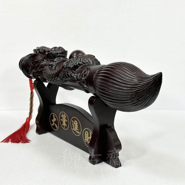 御古齋黑檀木 立體龍雕 龍吐珠 文昌筆 48cm 大筆進財 開運擺件 附座 五帝錢 1102