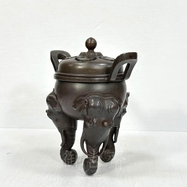 • 精雕鏤空蓋 象首三足銅爐