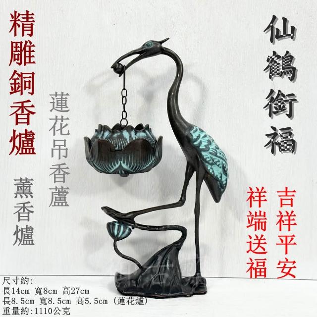 御古齋精選銅香爐 瑞鶴銜福 仙鶴吊蓮花爐 薰香爐 吊香爐 掛式香爐 附塔香粒 復古祥瑞 禪坐養生 1121