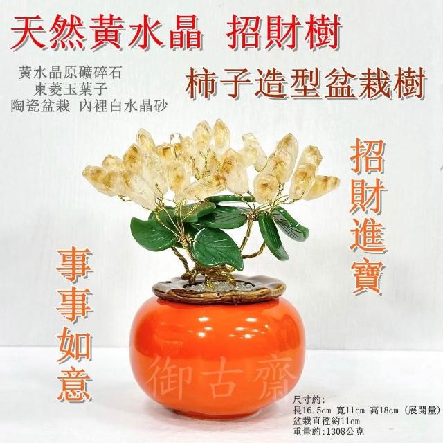 御古齋天然黃水晶 柿子造型 招財樹 水晶樹 陶瓷盆栽樹 事事如意 招財進寶 裝飾擺設 風水開運擺件 0619