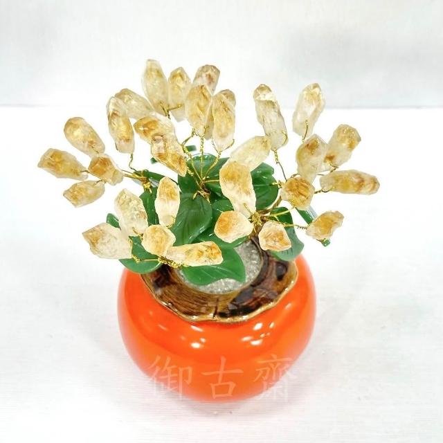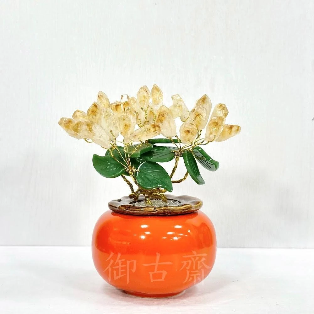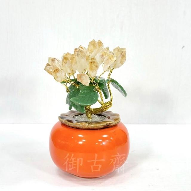 御古齋天然黃水晶 柿子造型 招財樹 水晶樹 陶瓷盆栽樹 事事如意 招財進寶 裝飾擺設 風水開運擺件 0619