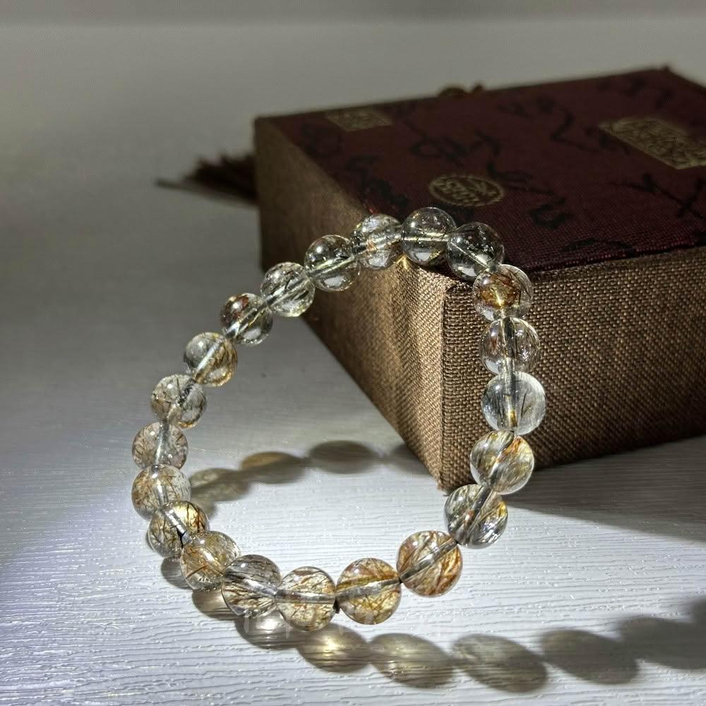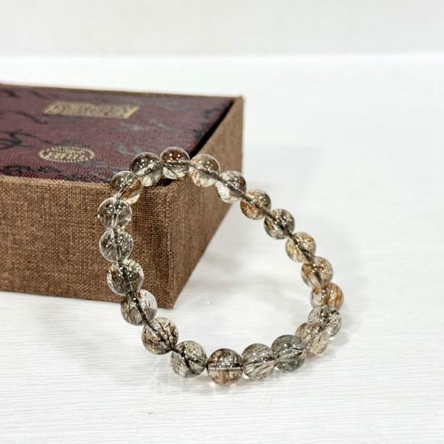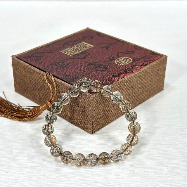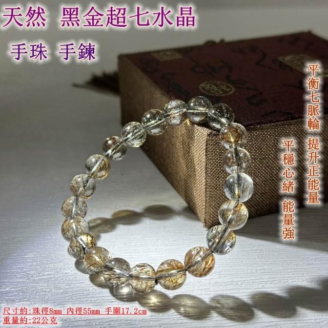 御古齋天然 黑金超七水晶 手珠 平衡七脈輪 提升正能量 平穩心緒 能量強 附收藏盒 0814