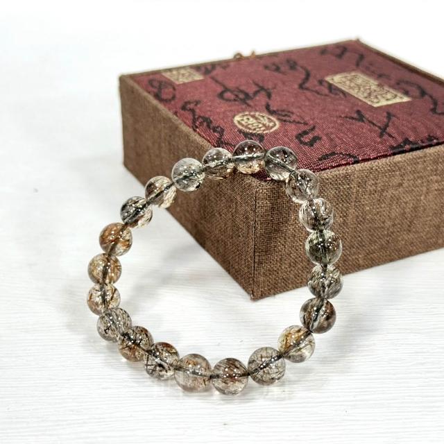 御古齋天然 黑金超七水晶 手珠 平衡七脈輪 提升正能量 平穩心緒 能量強 附收藏盒 0814