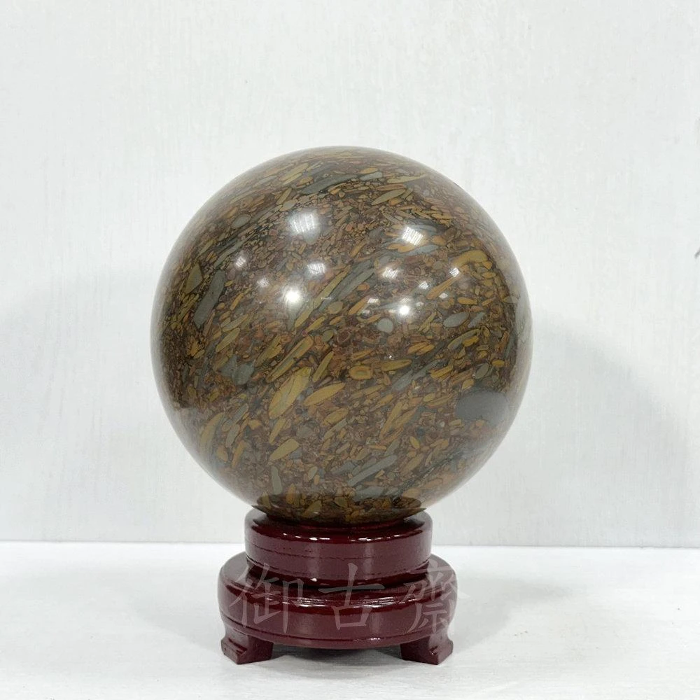 御古齋天然 女媧石球 15cm 有求必應 求財得財 改善氣場 五行開運 招財 居家辦公室擺件 附球座 0930