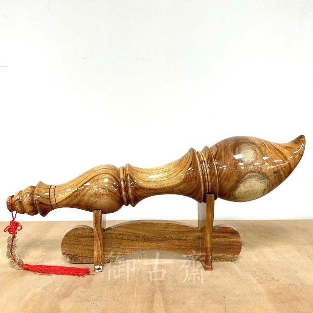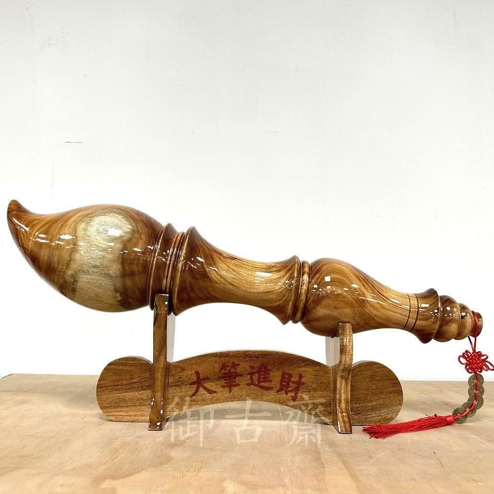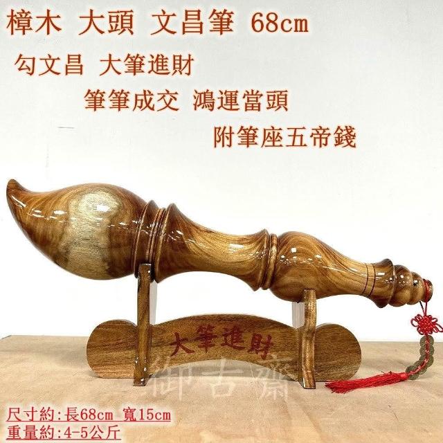御古齋樟木 大頭 文昌筆 68cm 勾文昌 大筆進財 筆筆成交 鴻運當頭 開運招財擺件 附筆座五帝錢 1124