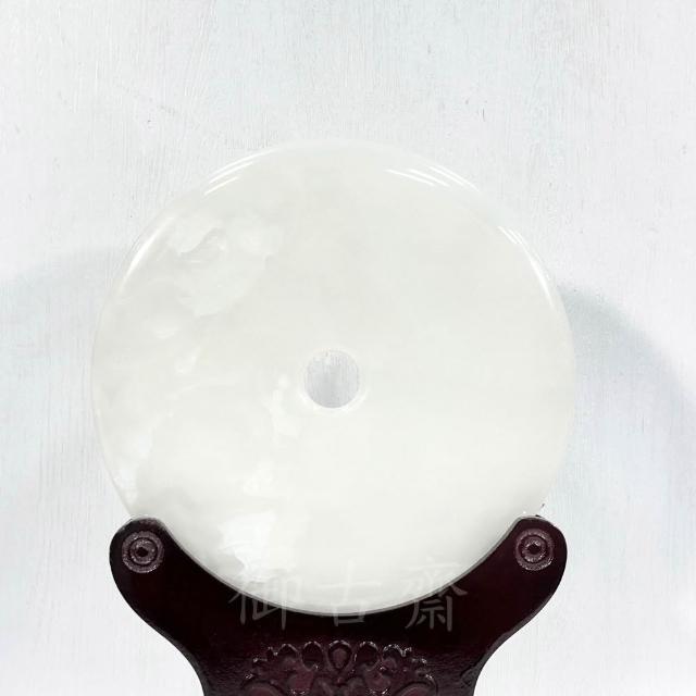 御古齋天然 義大利 白玉 平安扣 質潤沁透 圓滿平安 平安如意 招福擋煞 風水開運擺件 附座 0806