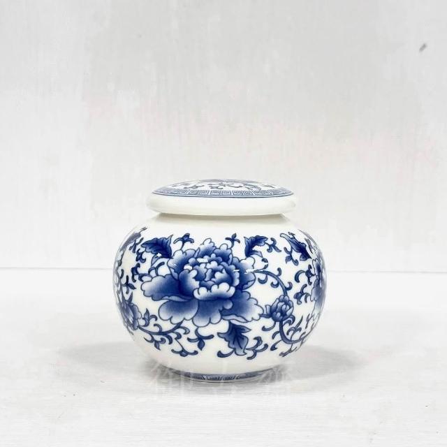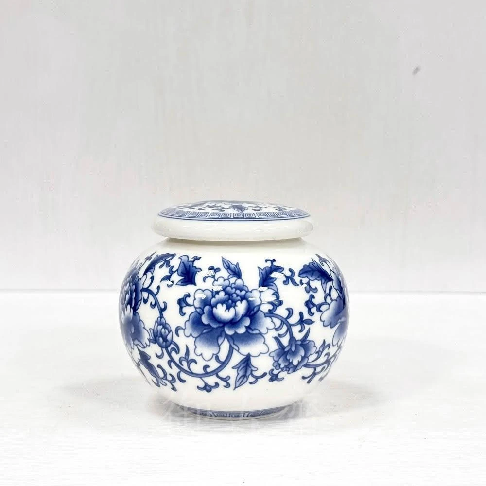 御古齋青花瓷 小茶倉 茶葉罐 三兩罐 茶罐 密封罐 防潮 儲物罐 陶瓷工藝品 普洱茶 茶道 1116