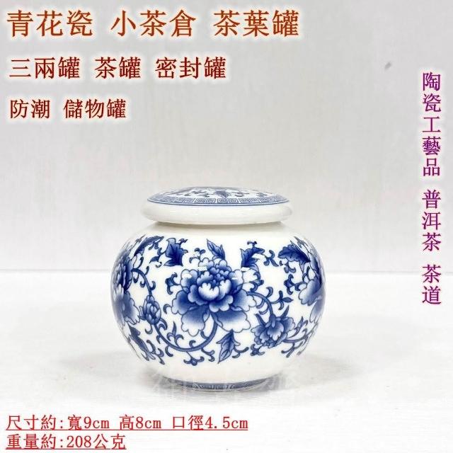 御古齋青花瓷 小茶倉 茶葉罐 三兩罐 茶罐 密封罐 防潮 儲物罐 陶瓷工藝品 普洱茶 茶道 1116