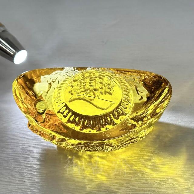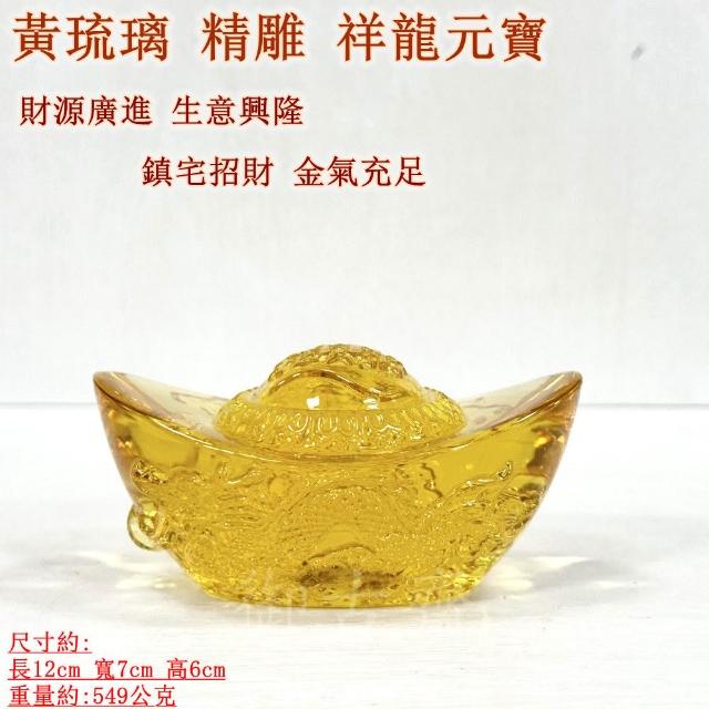 御古齋黃琉璃 元寶 精雕 祥龍 12公分 財源廣進 生意興隆 鎮宅招財 金氣充足 催旺文昌 開運擺件 1206