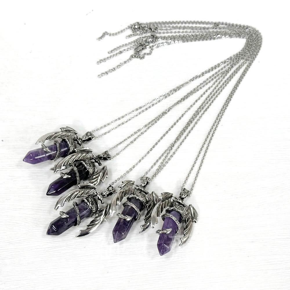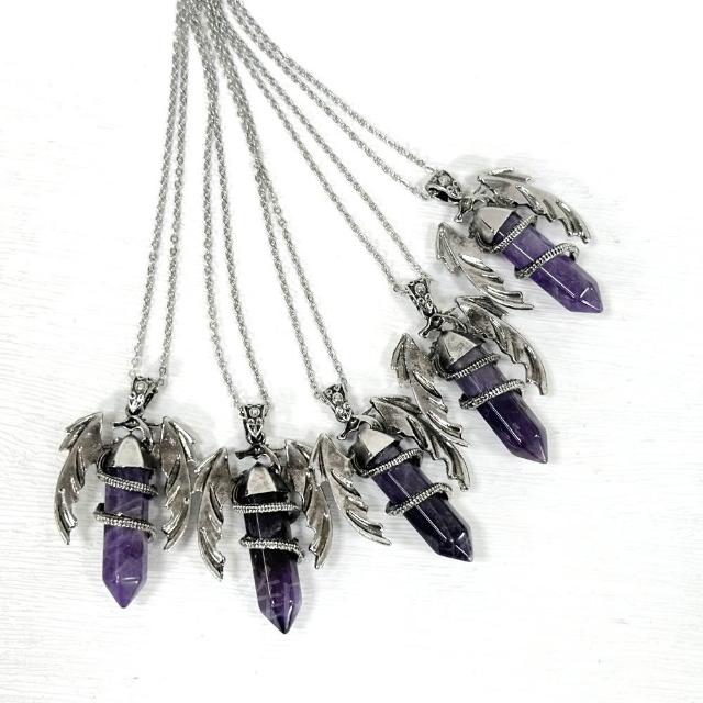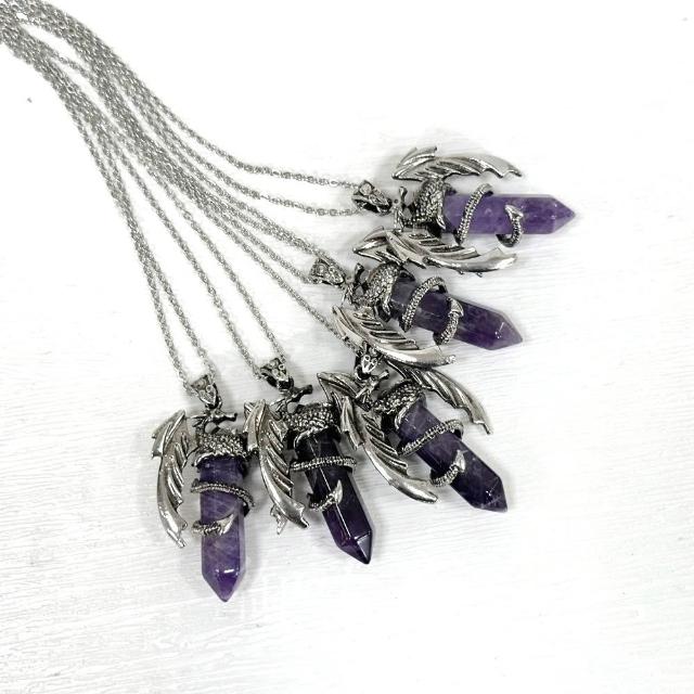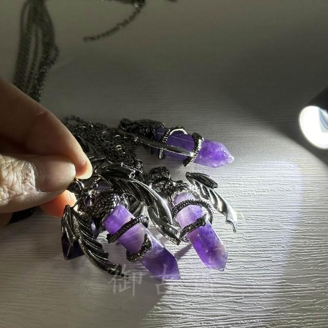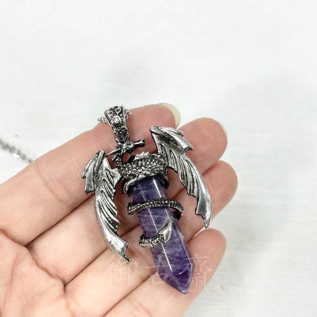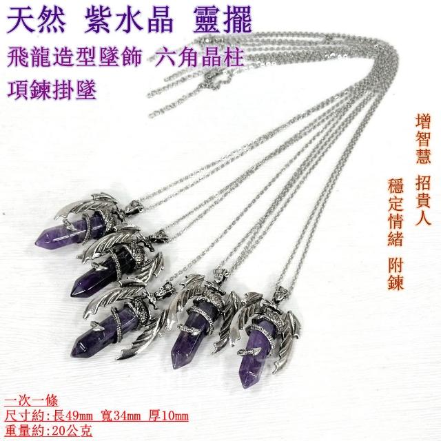 御古齋天然 紫水晶 靈擺 飛龍造型墜飾 六角晶柱 項鍊掛墜 增智慧 招貴人 穩定情緒 附鍊 0827
