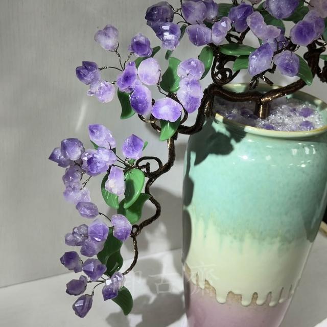 御古齋天然 紫水晶 招財樹 陶瓷 花瓶 水晶樹 盆栽樹 原礦 增智慧 招貴人 裝飾擺設 風水開運擺件 110102