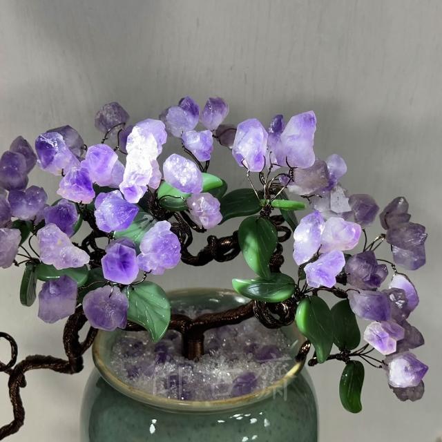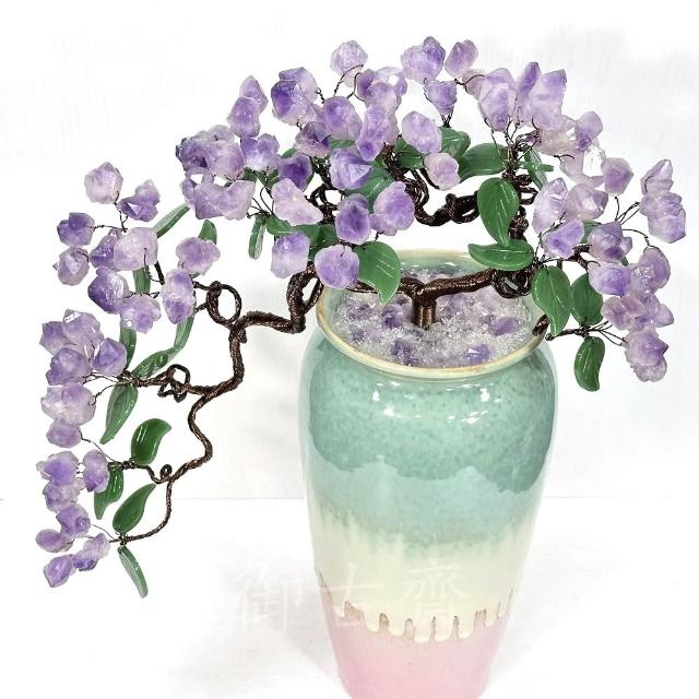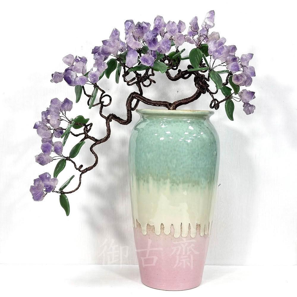 御古齋天然 紫水晶 招財樹 陶瓷 花瓶 水晶樹 盆栽樹 原礦 增智慧 招貴人 裝飾擺設 風水開運擺件 110102