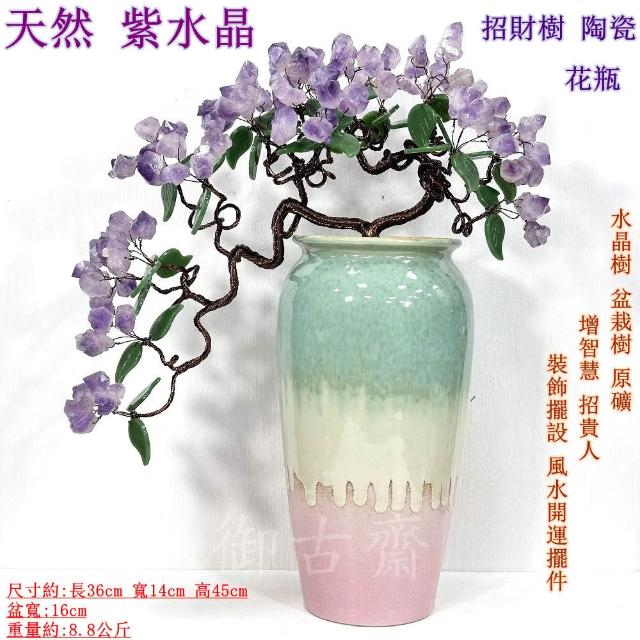 御古齋天然 紫水晶 招財樹 陶瓷 花瓶 水晶樹 盆栽樹 原礦 增智慧 招貴人 裝飾擺設 風水開運擺件 110102