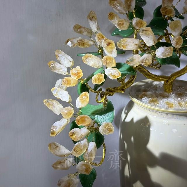 御古齋天然 黃水晶 招財樹 陶瓷 花瓶 水晶樹 盆栽樹 原礦 招財 助事業 裝飾擺設 風水開運擺件 110502