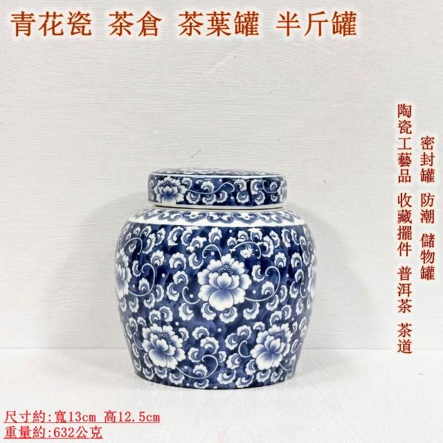 御古齋青花瓷 茶倉 茶葉罐 半斤罐 密封罐 防潮 儲物罐 陶瓷工藝品 收藏擺件 普洱茶 茶道 0712