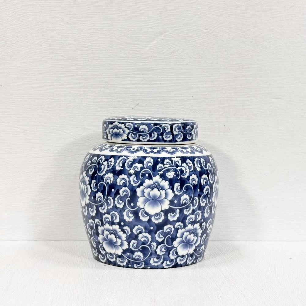 御古齋青花瓷 茶倉 茶葉罐 半斤罐 密封罐 防潮 儲物罐 陶瓷工藝品 收藏擺件 普洱茶 茶道 0712