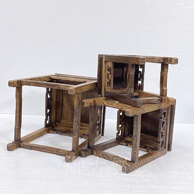 御古齋虎斑雞翅木 四方高腳架 正方形 藝品展示底座 小花台 底座 實用擺設 三種尺寸可選 0927